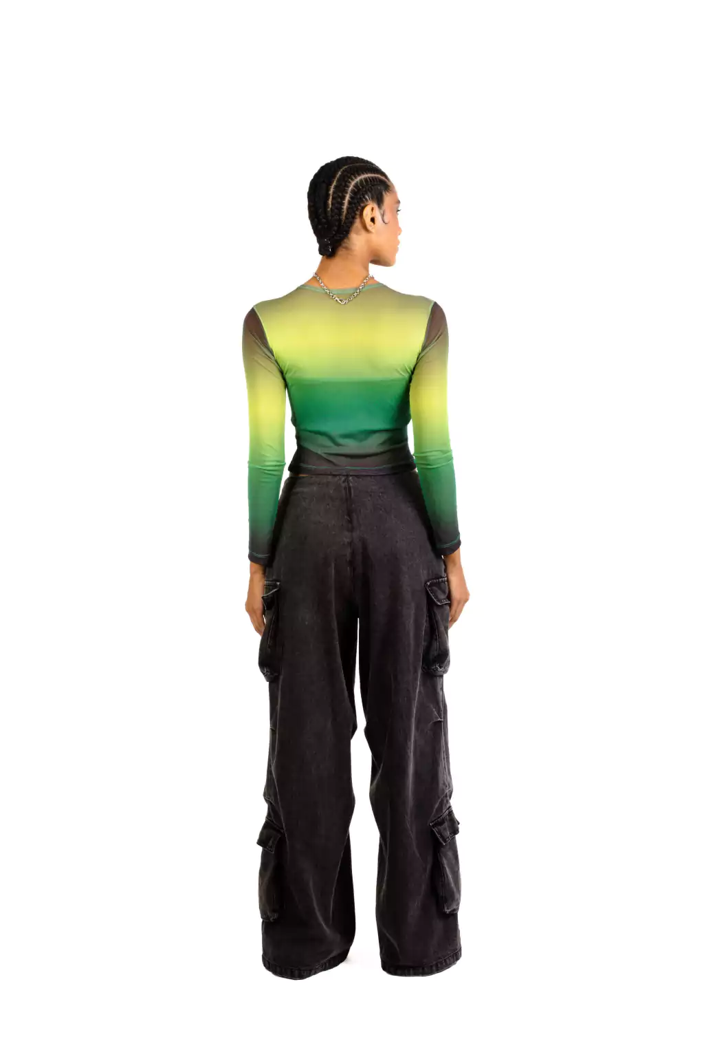 Nossa blusa tule possui estampa degradê exclusiva EITH, com cores vibrantes em tons de verde. E como nós pensamos em tudo para você, a peça já acompanha um top preto para ser usado por debaixo da peça (opcional).